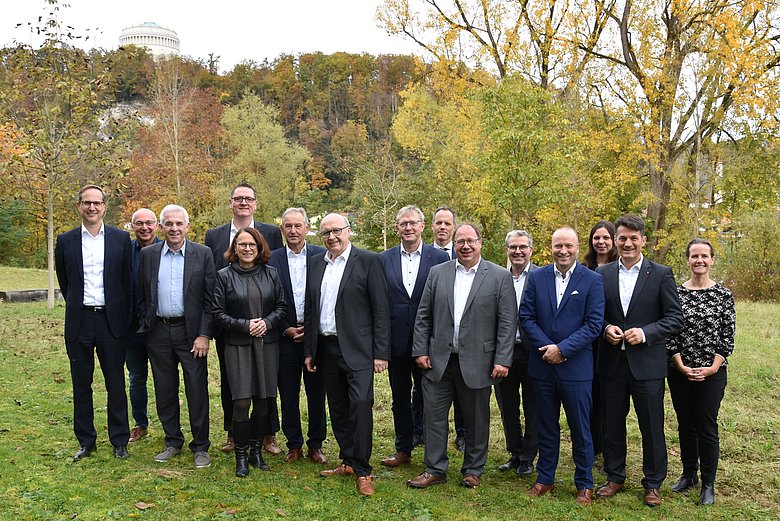 Im Bild v.l.n.r.: Dr. Matthias Jenn (Geschäftsführer bayernets GmbH), Prof. Dr.-Ing. Hans-Peter Rabl (OTH Regensburg), Wolfgang Ott (Kelheim Fibres GmbH), Harald Hillebrand (Referent Landrätin Regensburg), Gertrud Maltz-Schwarzfischer (Oberbürgermeisterin Stadt Regensburg), Ludwig Artinger (3. Bürgermeister Stadt Regensburg), Martin Neumeyer (Landrat Landkreis Kelheim, Vorsitzender Wasserstoffallianz), Ludwig Friedl (Geschäftsführer Energieagentur Regensburg e.V.), Christian Egetemeyr (Bayerisches Staatsministerium für Wirtschaft, Landesentwicklung und Energie), Richard Unterseer (bayernets GmbH), Dr. Alexander Struck (Geschäftsführer Bayernoil Raffineriegesellschaft mbH), André Kühnle (Vitesco Technologies GmbH), Dr. Elke Wanke (Referentin Erneuerbare Gase & Wasserstoffbeauftragte Energie Südbayern Gruppe), Prof. Dr. Georg Stephan Barfuß (Leiter Referat für Wirtschaft, Wissenschaft und Finanzen Stadt Regensburg), Sandra Schneider (Wirtschaftsreferentin Landkreis Kelheim) // Foto: Lukas Sendtner, Landratsamt Kelheim